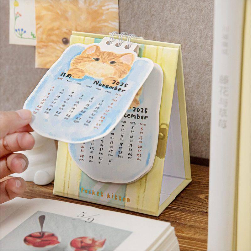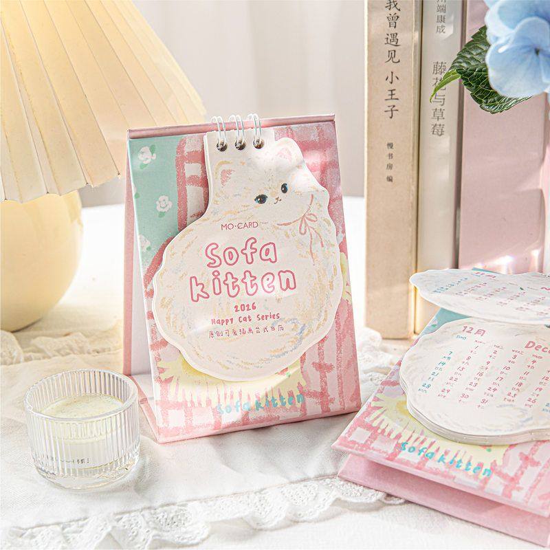 2026年迷你台式周月历幸福猫咪可爱卡通异形桌面打卡摆件