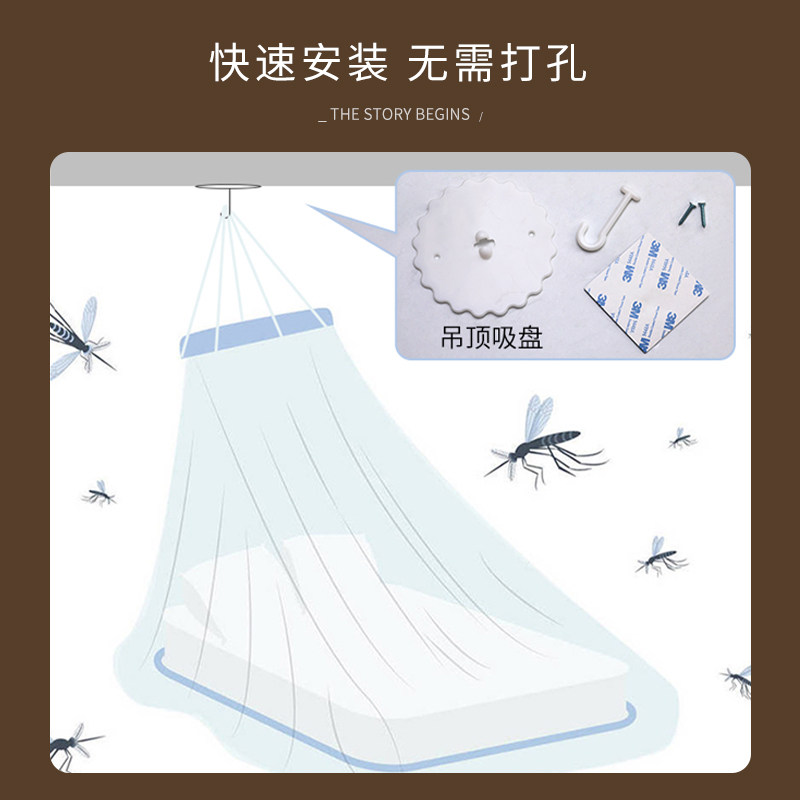 圆顶式吊顶蚊帐免安装家用2025可折叠防蚊罩卧室加密落地纯色帐纱