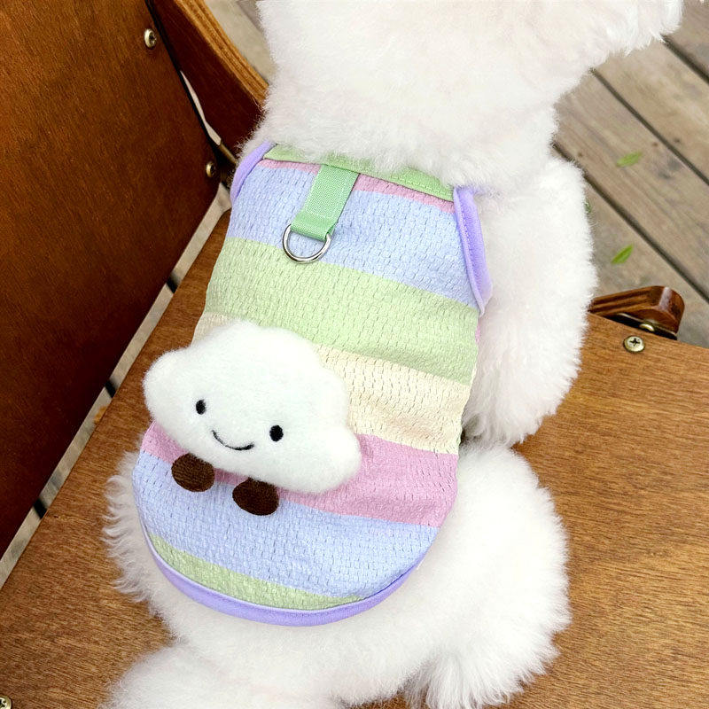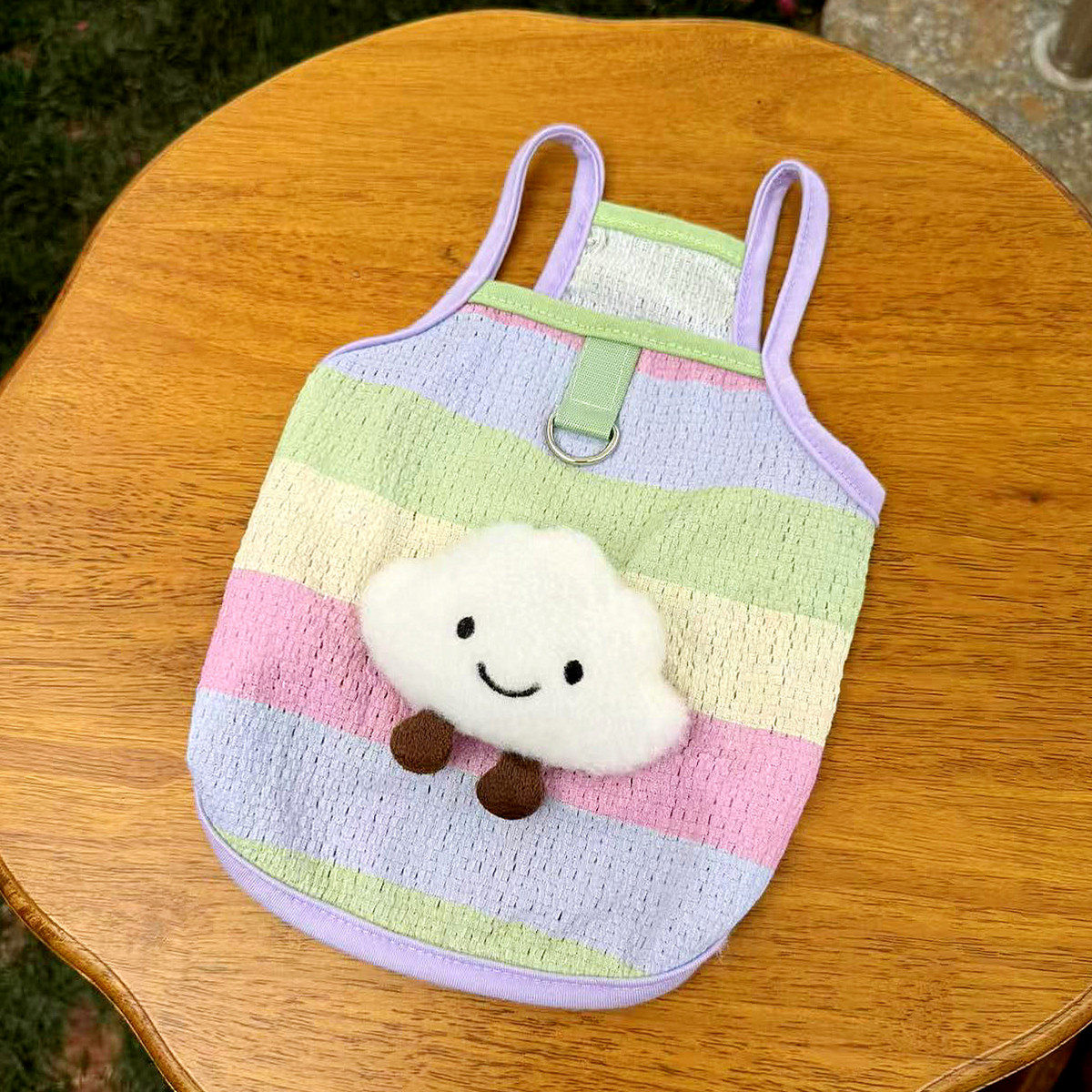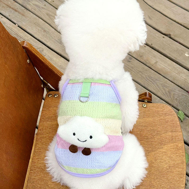 幼犬彩虹宠物小型狗狗衣服薄款熊泰迪博美比春夏条纹云朵吊带背心