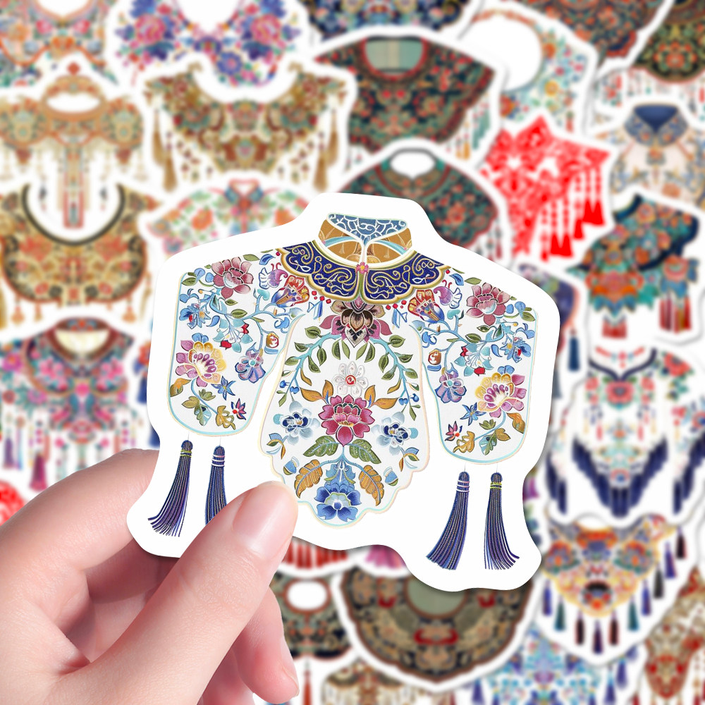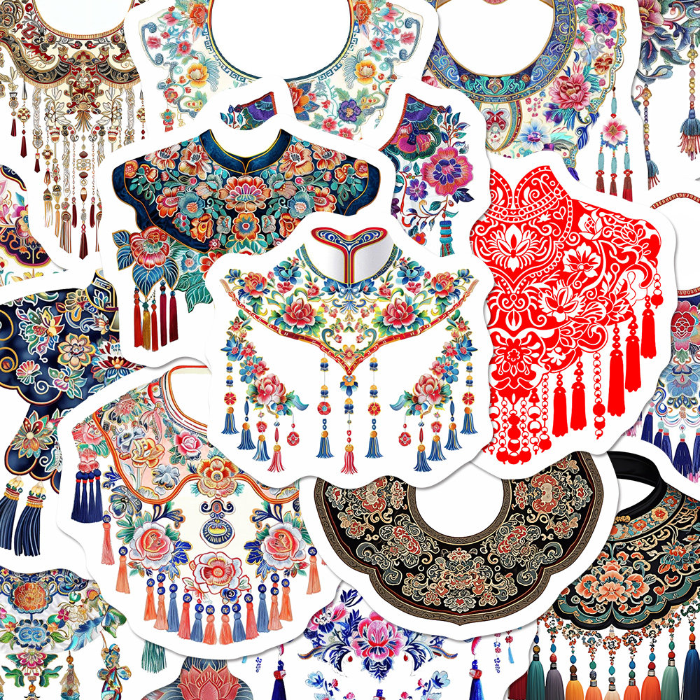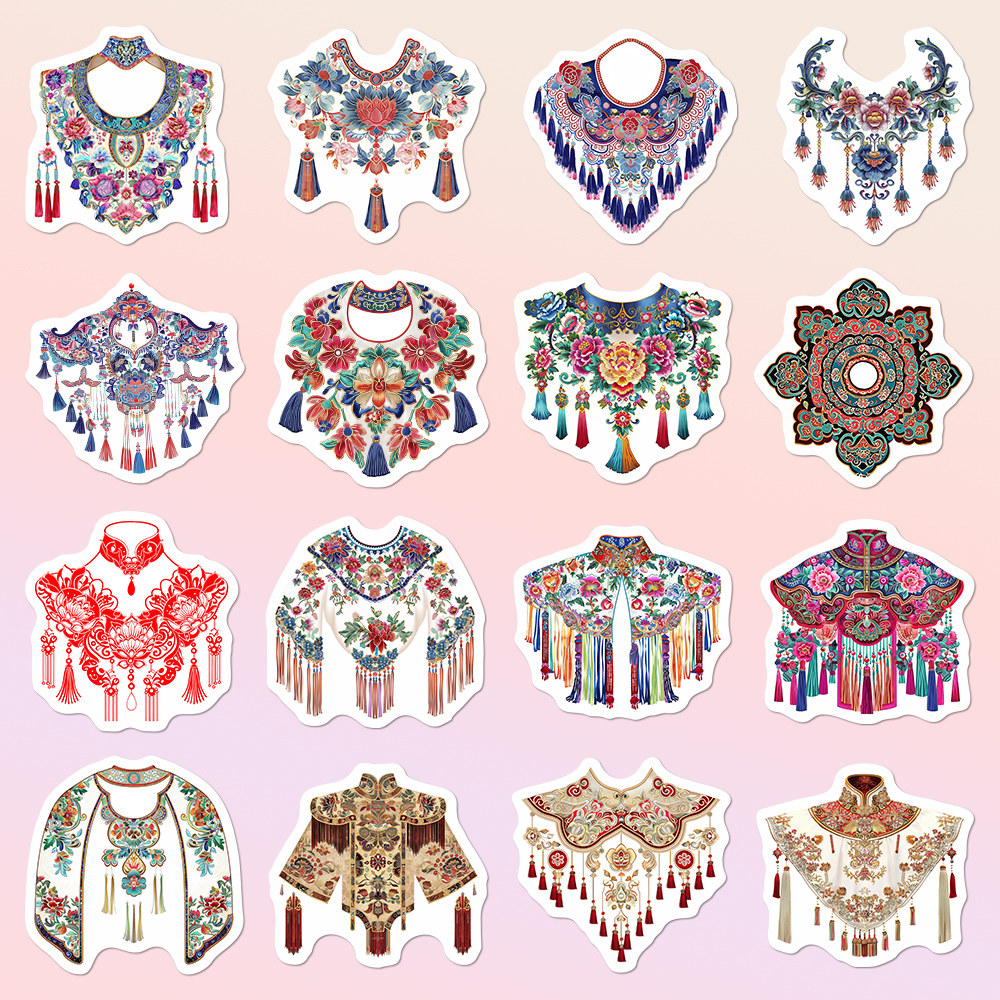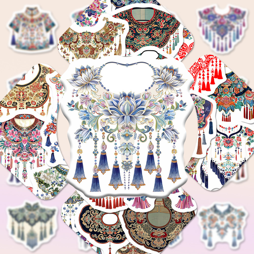 150张传统纹样云肩图鉴贴纸中华传统民族风服饰DIY手账笔记桌面