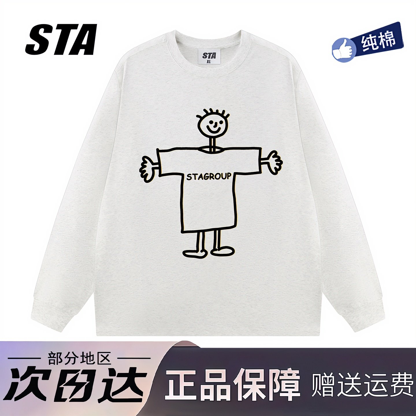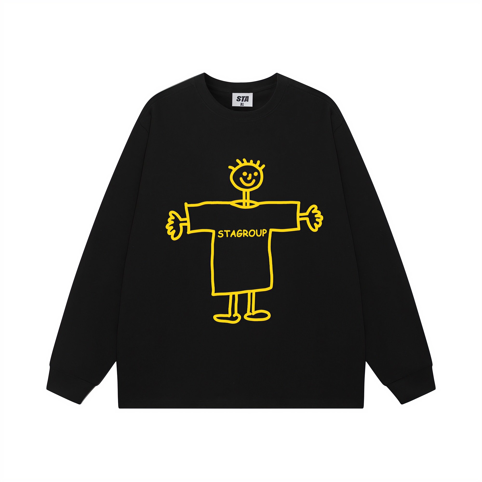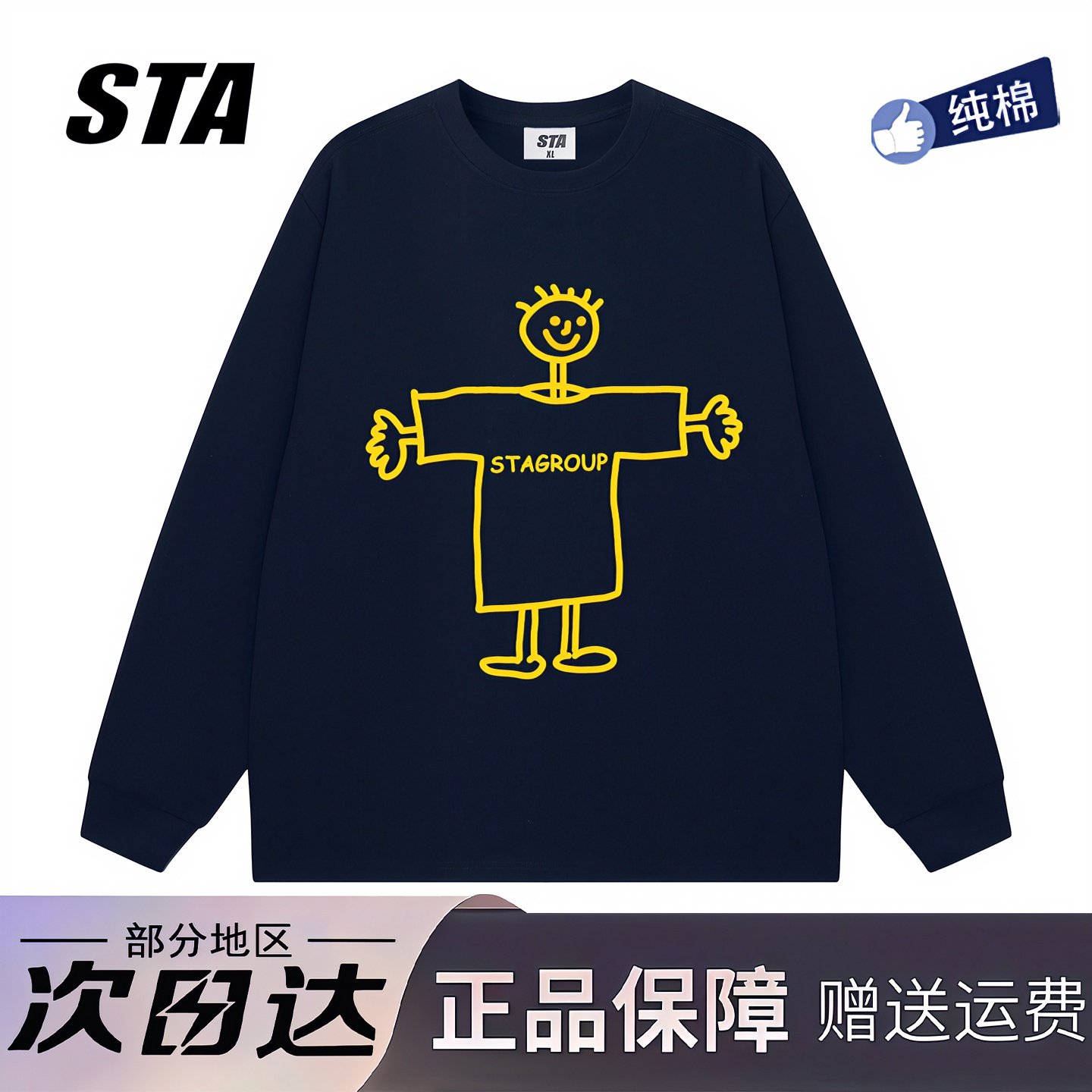 STA旗舰店美式卡通拥抱笑脸印花长袖男女潮牌高街重磅纯棉卫衣