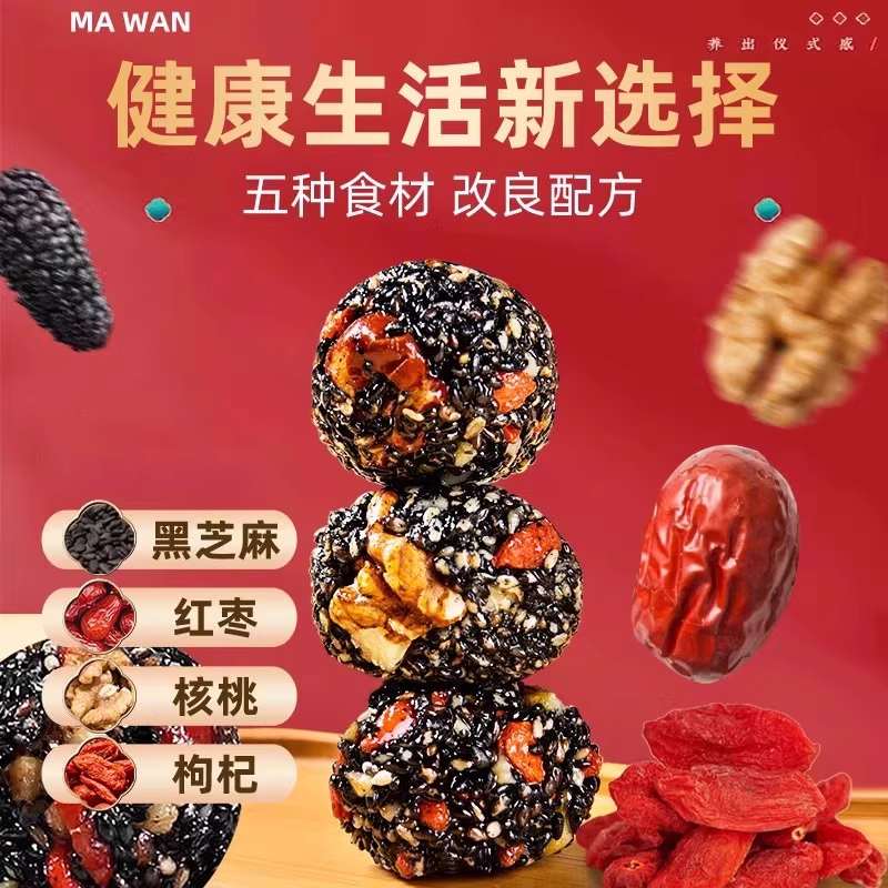 黑芝麻丸核桃桑葚枸杞糕芝麻球零食无蔗糖爆浆官方旗舰店红枣五珍
