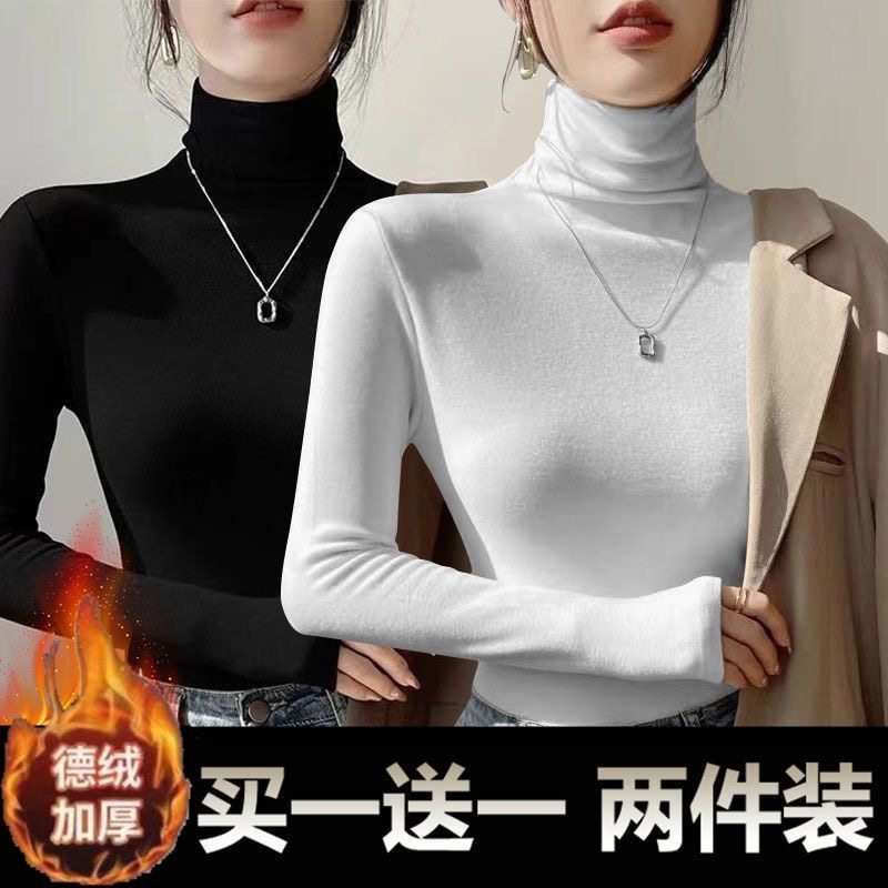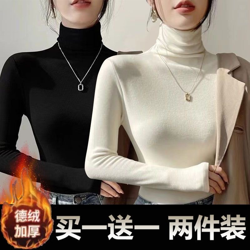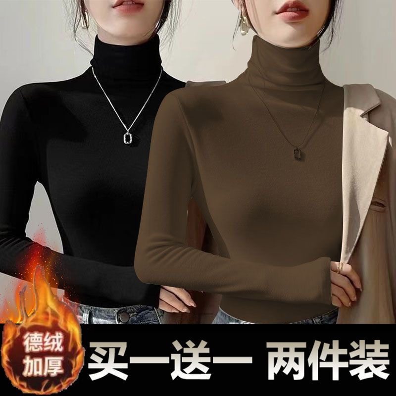 德绒堆堆高领保暖打底上衣内衬秋冬新款大码内搭显瘦长袖百搭T恤