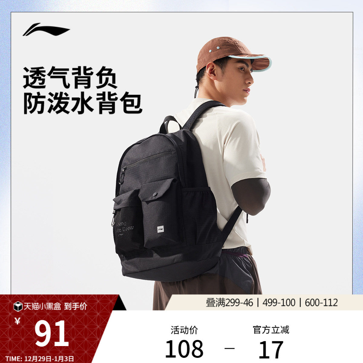 李宁双肩包男女同款包包官方户外出游健身背包学生书包反光运动包