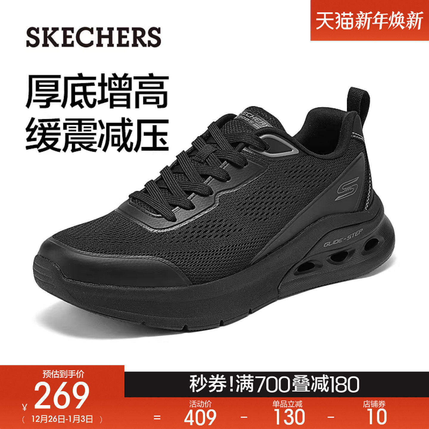 斯凯奇2025年秋冬男子百搭时尚厚底增高网面休闲鞋气垫减震运动鞋