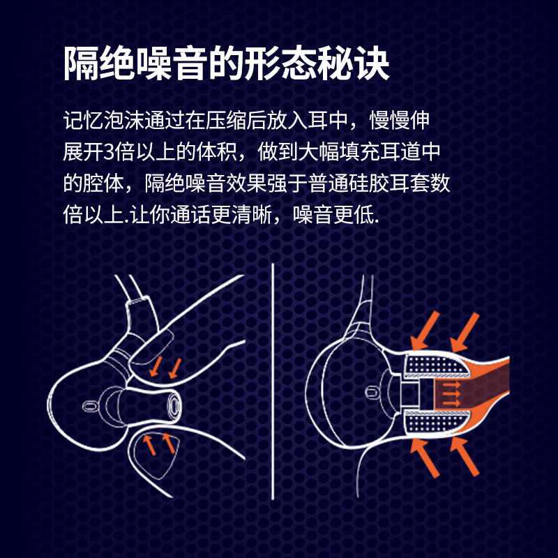 【增强低音】惰性慢回弹记忆海绵套入耳式耳塞 透气防油舒适耳套