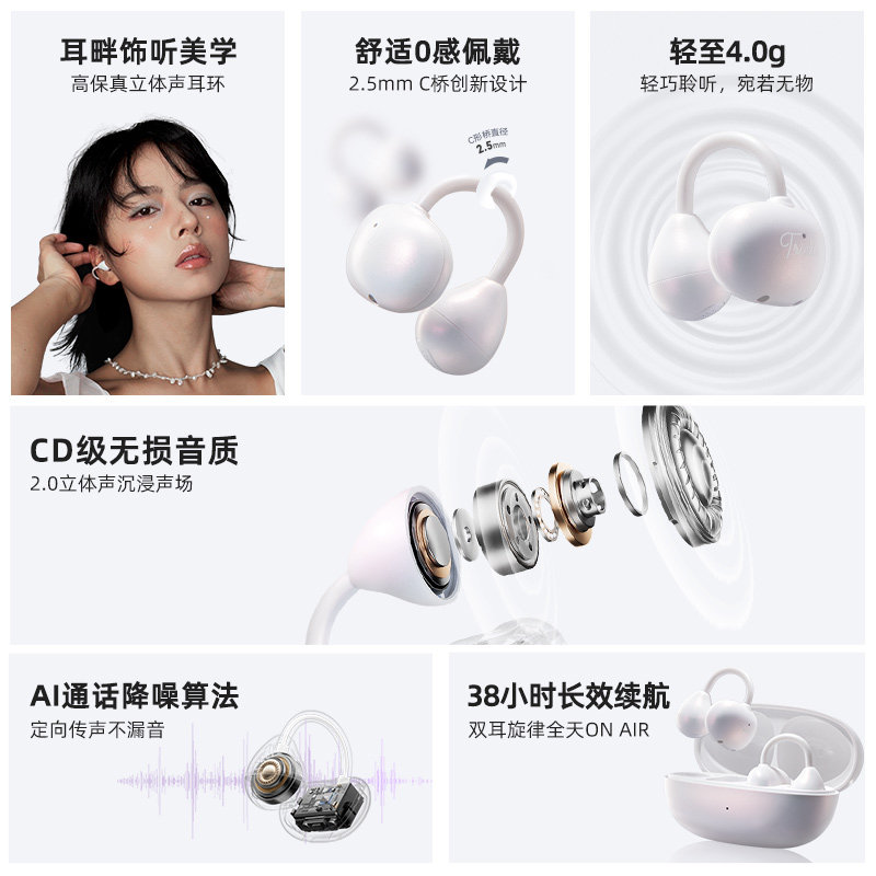 弱水时砂openfeel夹耳式蓝牙耳机挂耳HIFi运动跑步开放式专用耳机