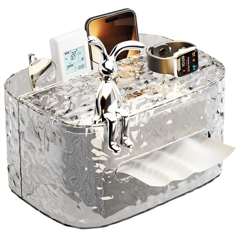冰川纹纸巾盒 高档轻奢 兔子装饰