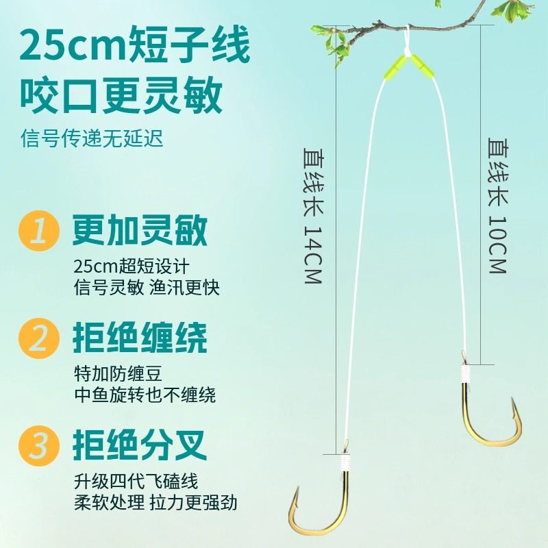 金袖鱼钩鱼线绑好鱼钩套装全套子线双钩成品组合防缠鲫鱼钩钓鱼