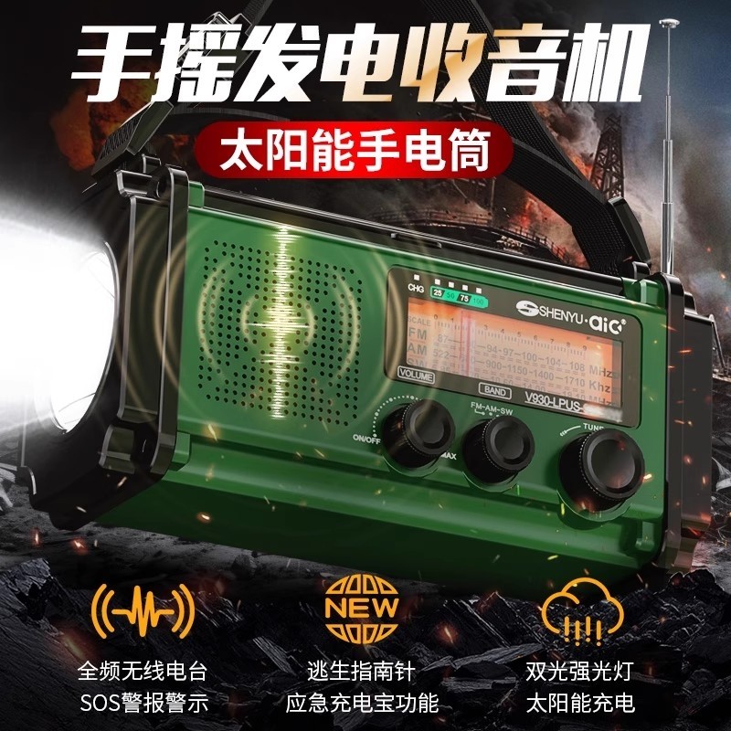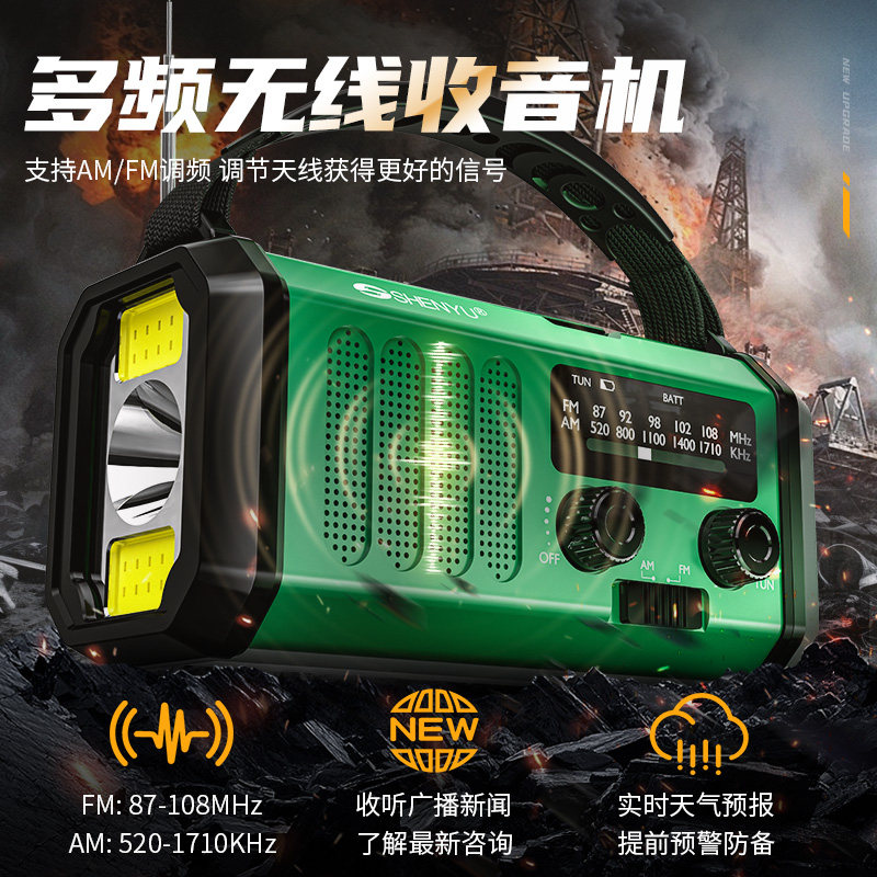 防灾应急手摇发电收音机手电筒太阳能末日野外充电宝战备生存装备