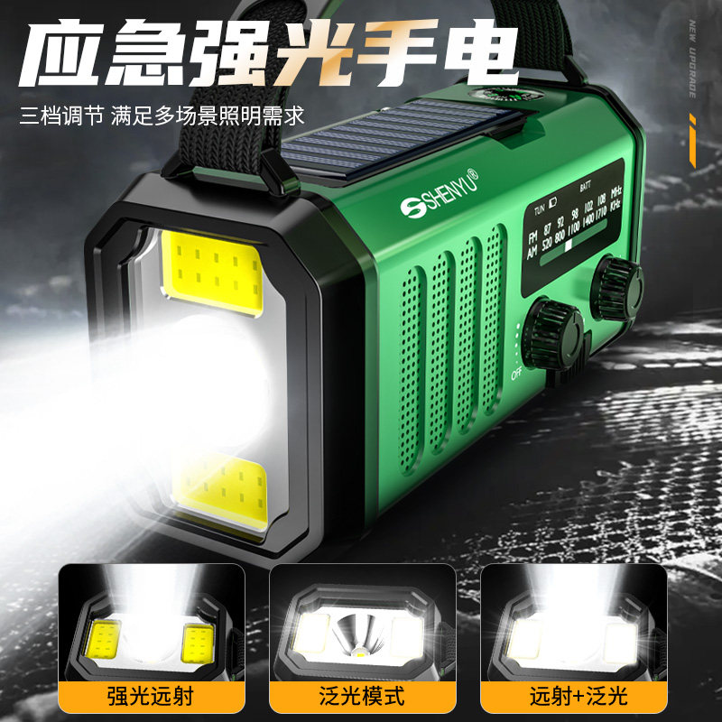 太阳能手摇发电收音机应急手电筒强光超亮多功能救援野外生存装备