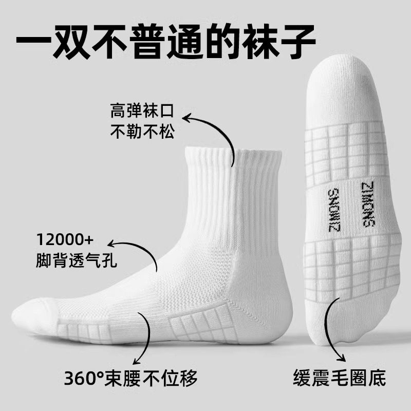 跑步袜女士运动袜子男毛巾底棉袜子男士防臭羽毛球长筒中筒抗菌袜