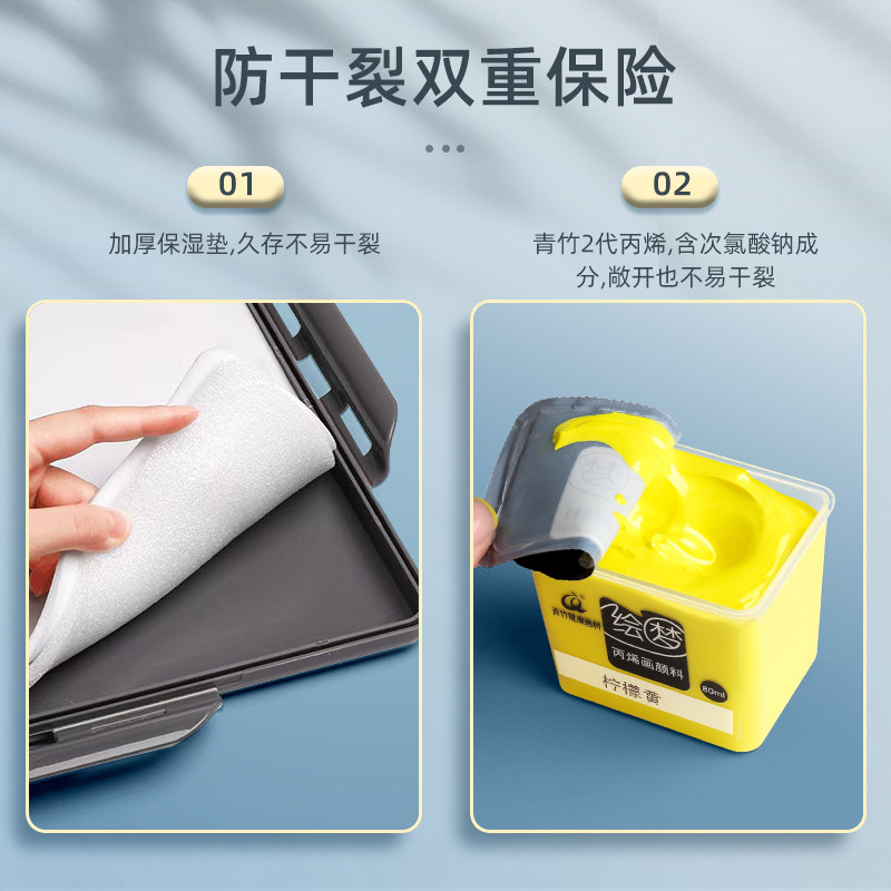 青竹丙烯颜料果冻套装42色80ml丙烯工具防水防晒不掉色美术生专用无甲醛墙画染料油画彩绘画Chinjoo/青竹画材
