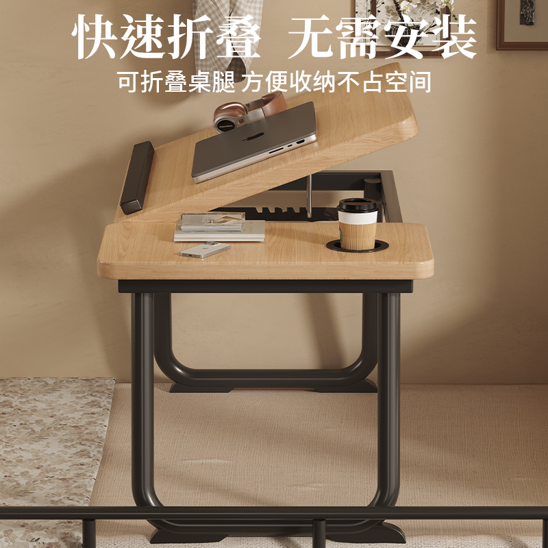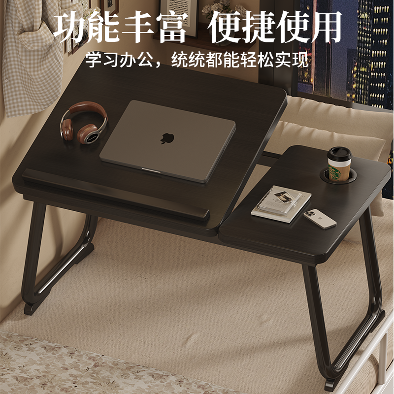 可升降折叠床上小桌子简约宿舍学生写字床上书桌学习调节高度支架家用卧室坐地飘窗懒人笔记本电脑办公小桌板