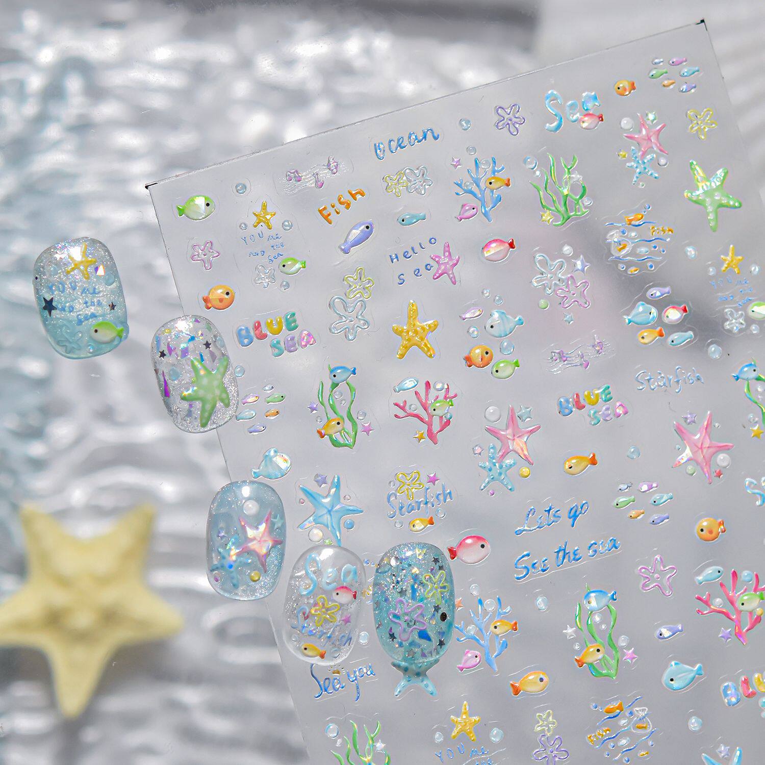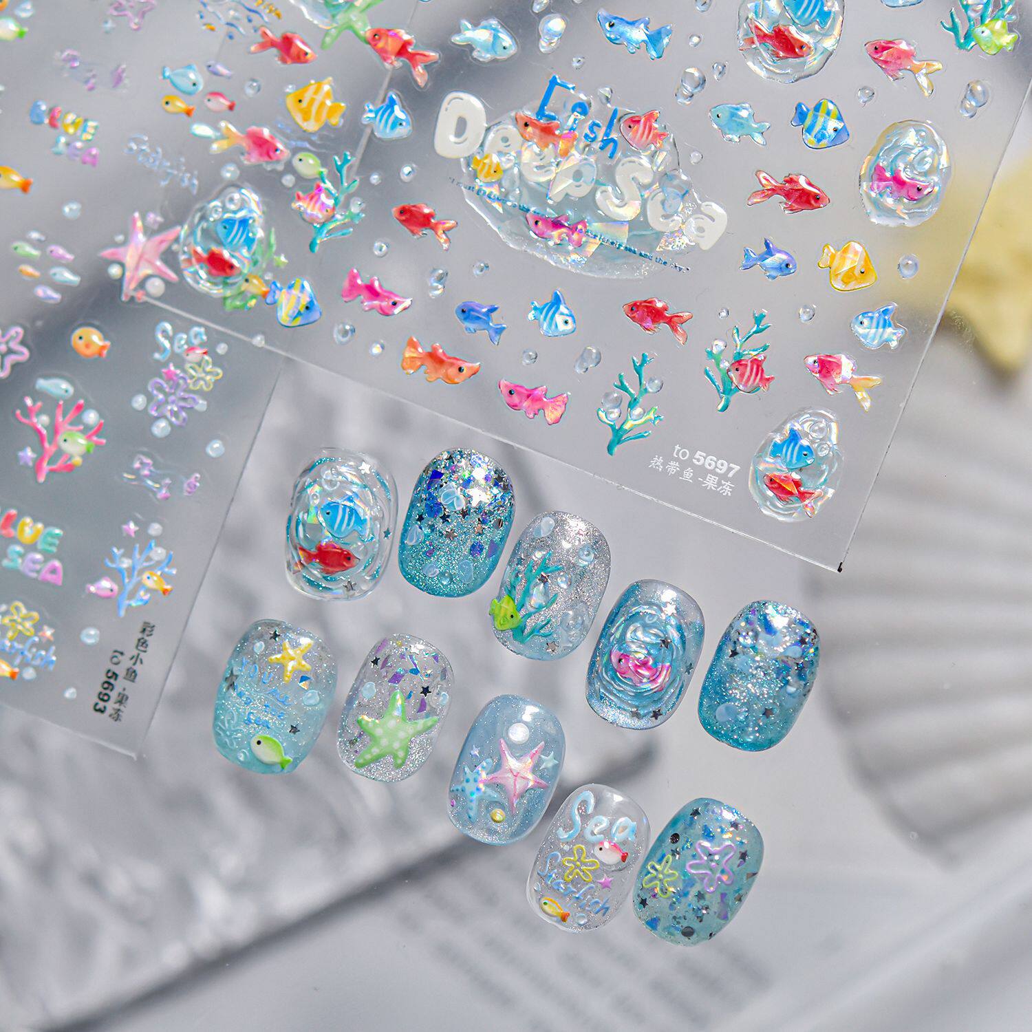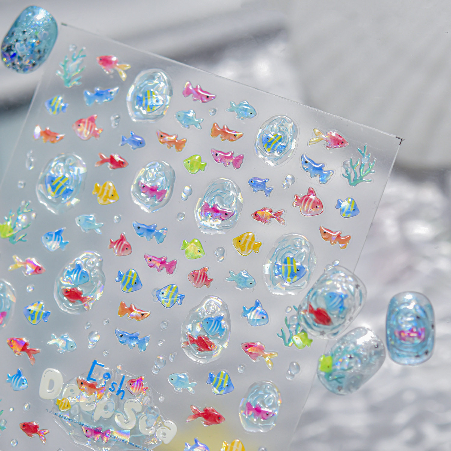 热带鱼果冻立体美甲贴纸装饰ins海洋指甲电脑手机壳iPad手账贴画