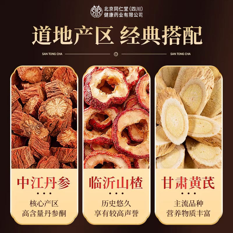 同仁堂丹参黄芪山楂三通茶保野生心正品官方旗舰店中药材泡水