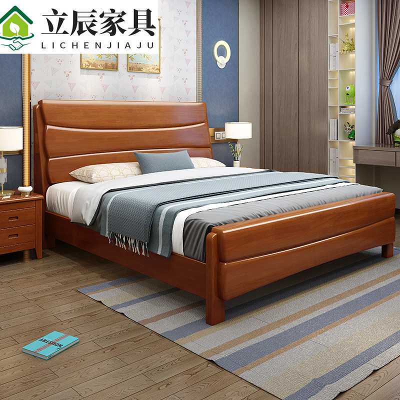 床1.8m双人床1.5米单人床宾馆酒店出租房主卧婚床高箱储物实木床