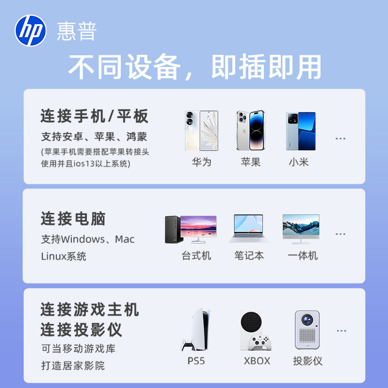 【全国补贴15%】HP惠普固态移动硬盘1T大容量高速u盘苹果手机电脑