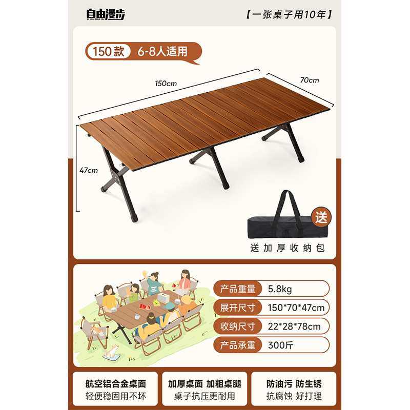 户外铝合金蛋卷桌折叠桌子便携野餐露营桌椅一体野炊装备全套用品