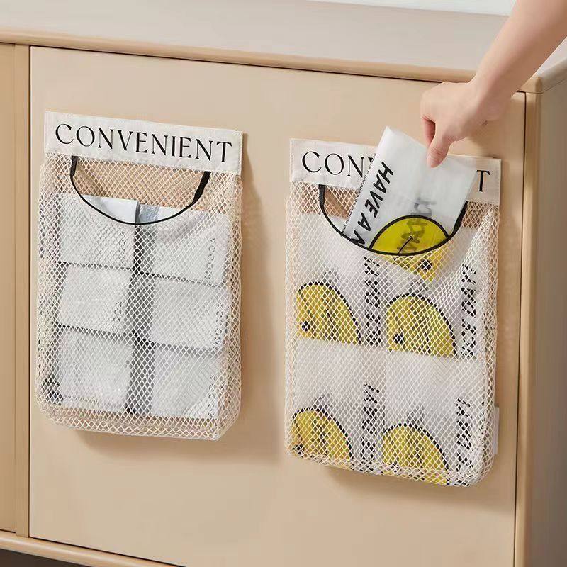厨房垃圾袋收纳神器塑料袋魔术网兜柜门壁挂式大容量桌面收纳挂袋