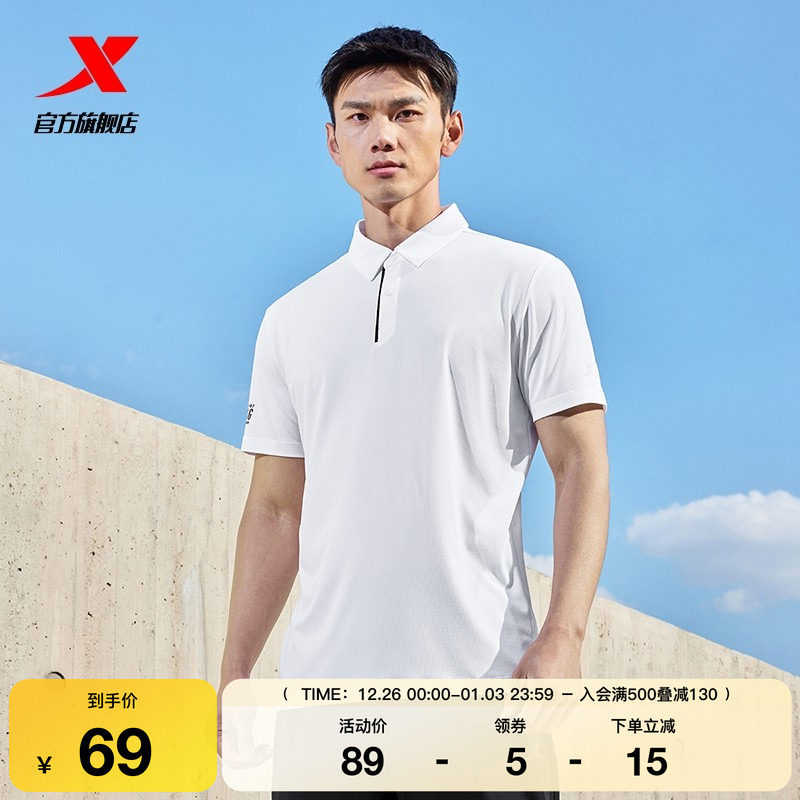 特步POLO衫男2025年新款夏健身上衣训练男装翻领T恤半袖运动短袖