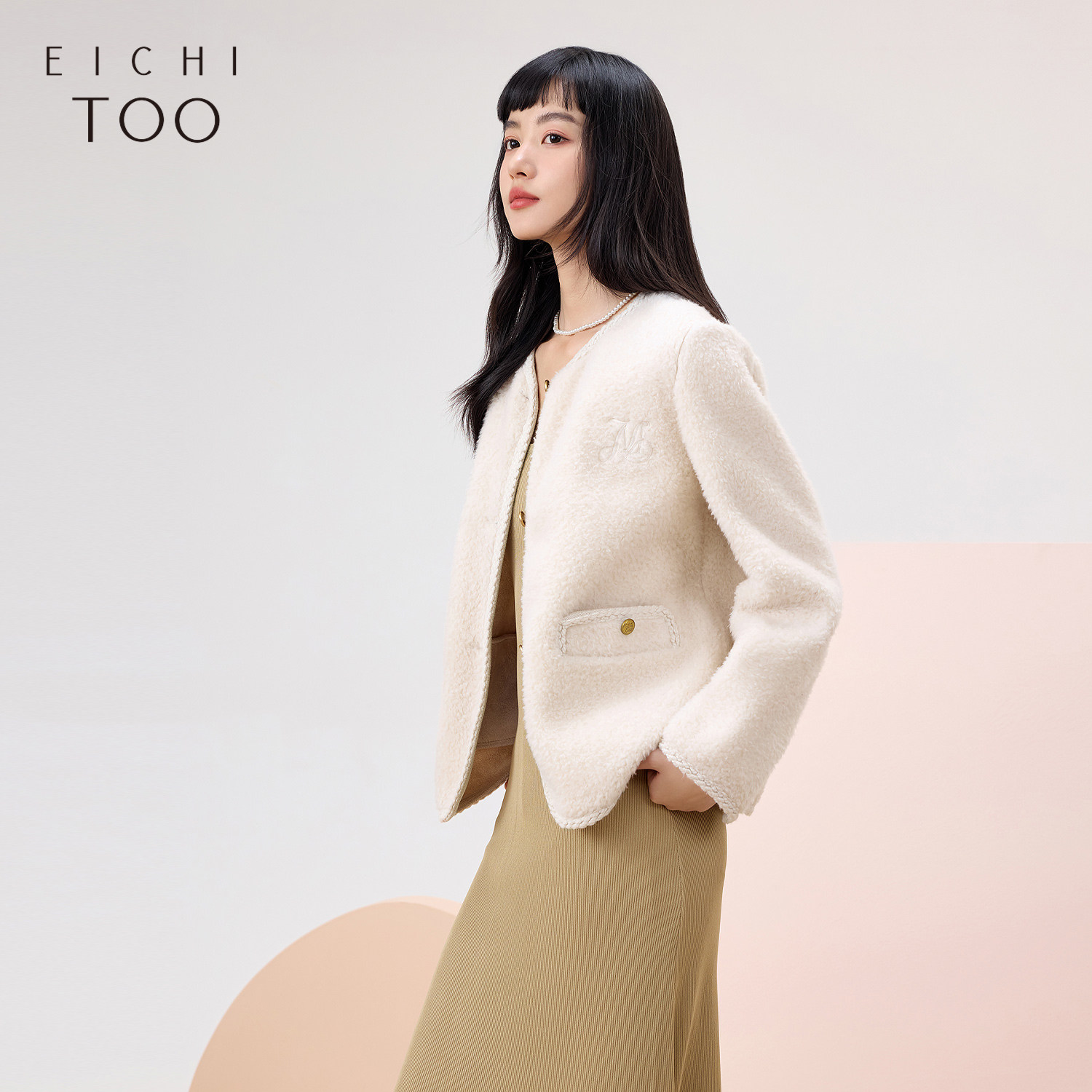 爱居兔小香风仿羊羔毛外套女冬季新款颗粒绒毛茸茸夹克上衣