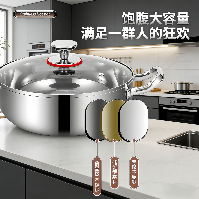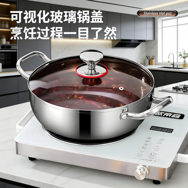 食品级不锈钢双耳火锅家用蒸煮泡面汤锅专用燃气电磁炉煮锅煲汤锅