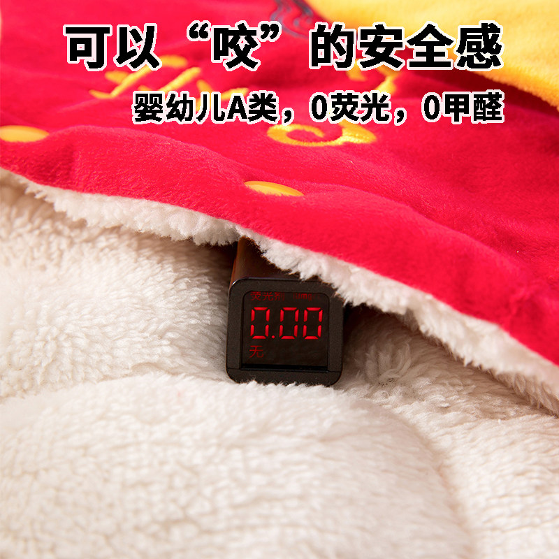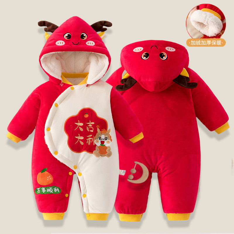 婧麒婴幼儿连体衣秋冬加厚保暖新生儿新年带帽哈衣男女宝宝爬爬服