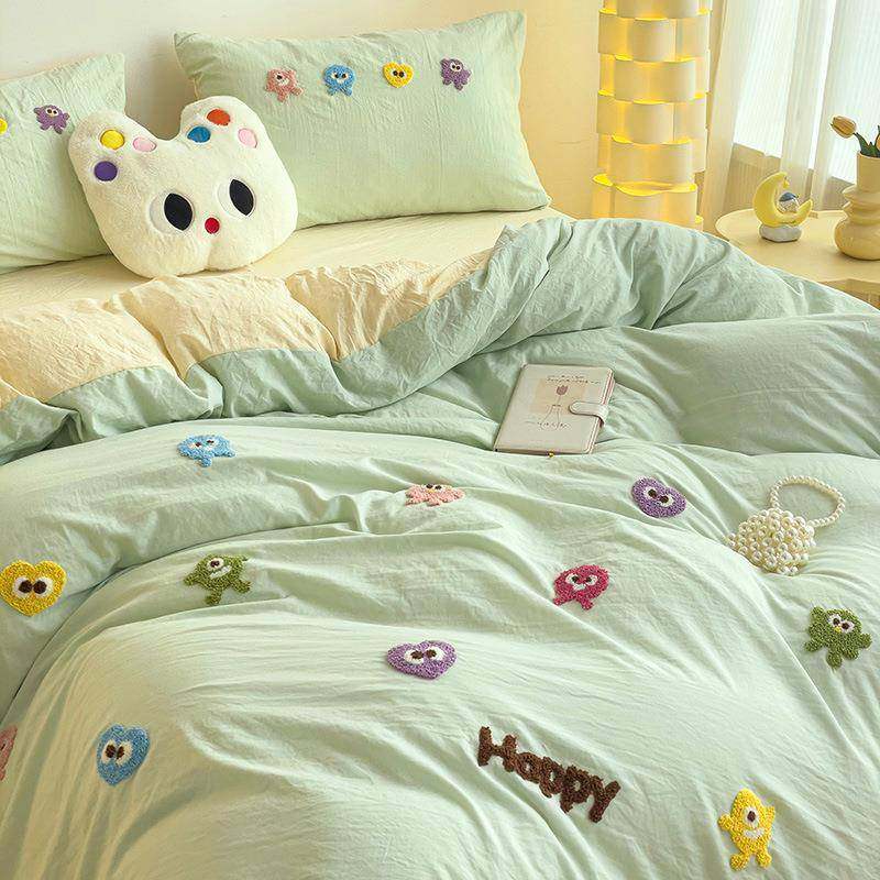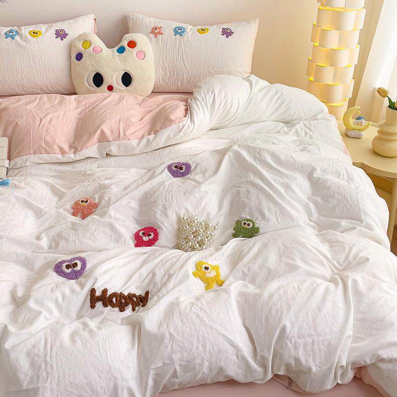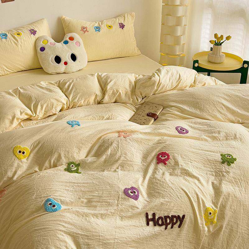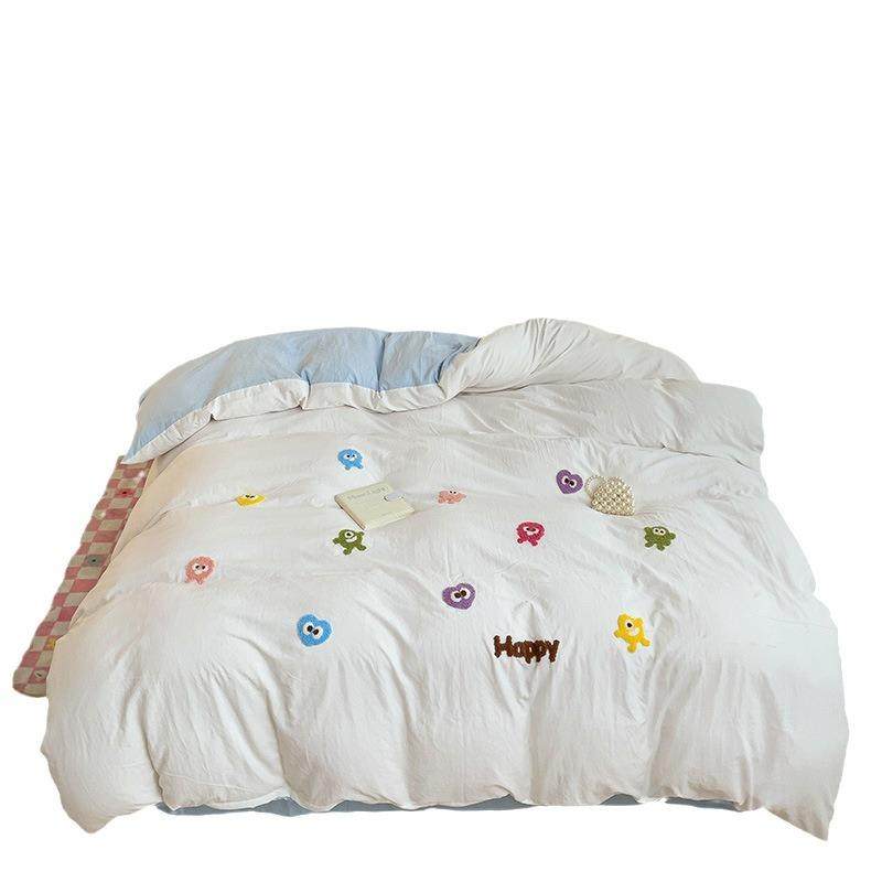 新款少女心水洗棉毛巾绣四件套学生宿舍三件套单被套床单床笠