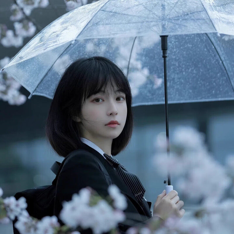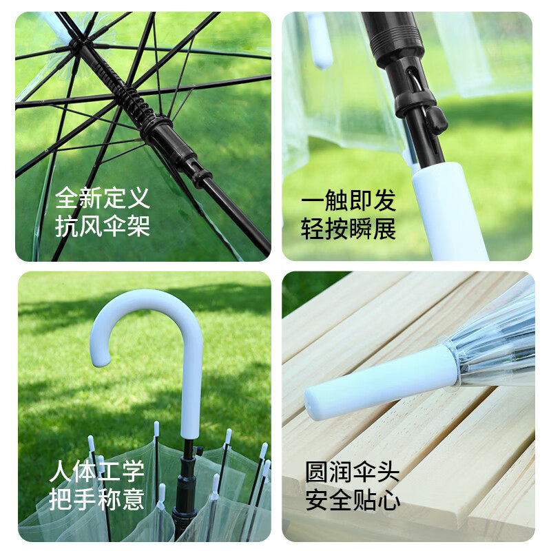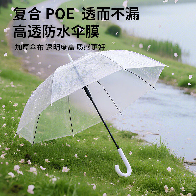 透明雨伞长柄手动女生高颜值家用便携学生上学专用情侣拍照出片男