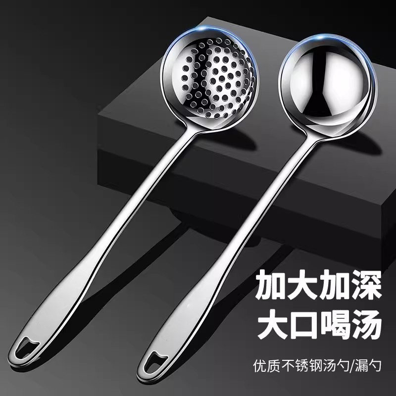 加厚不锈钢勺子家用长柄火锅勺防烫盛汤勺漏勺套装大号款加厚加长