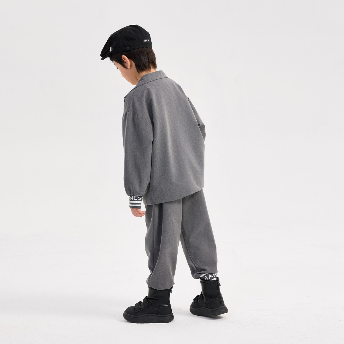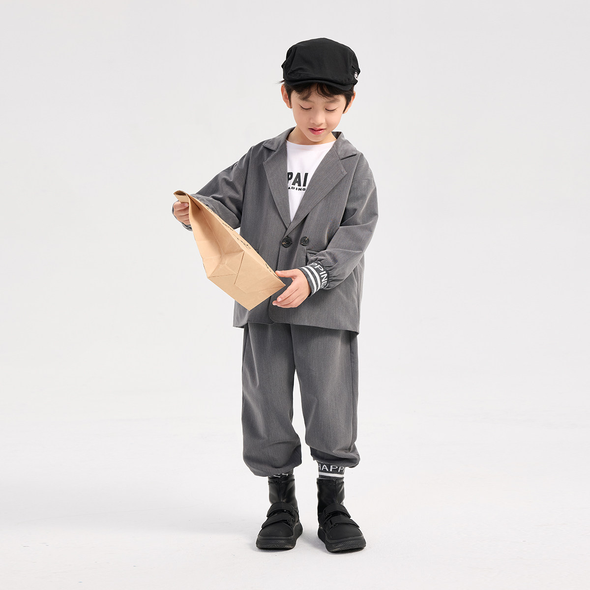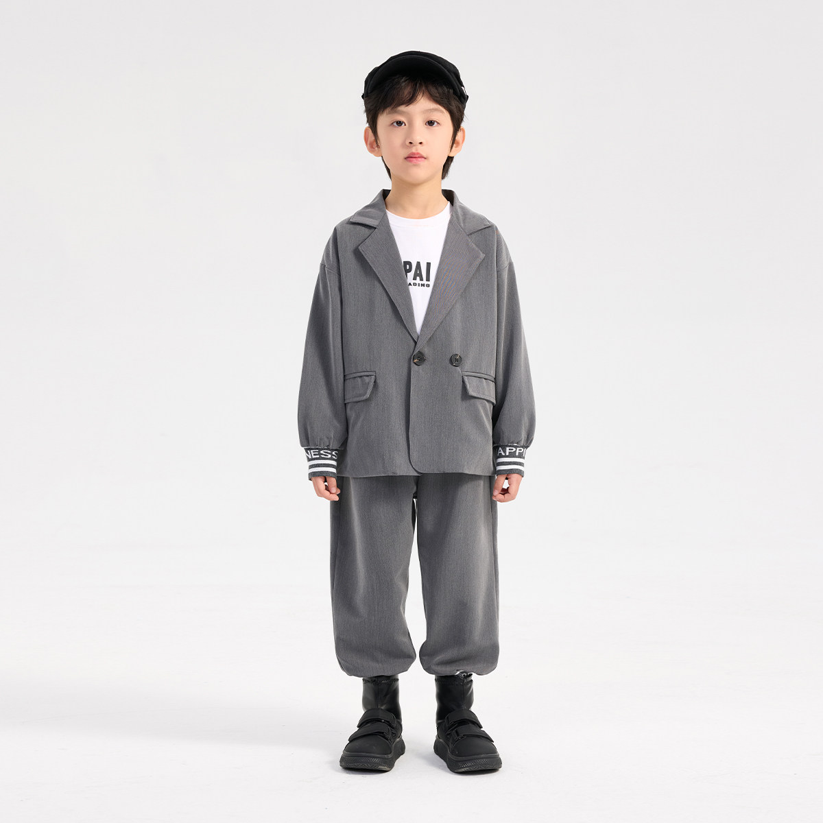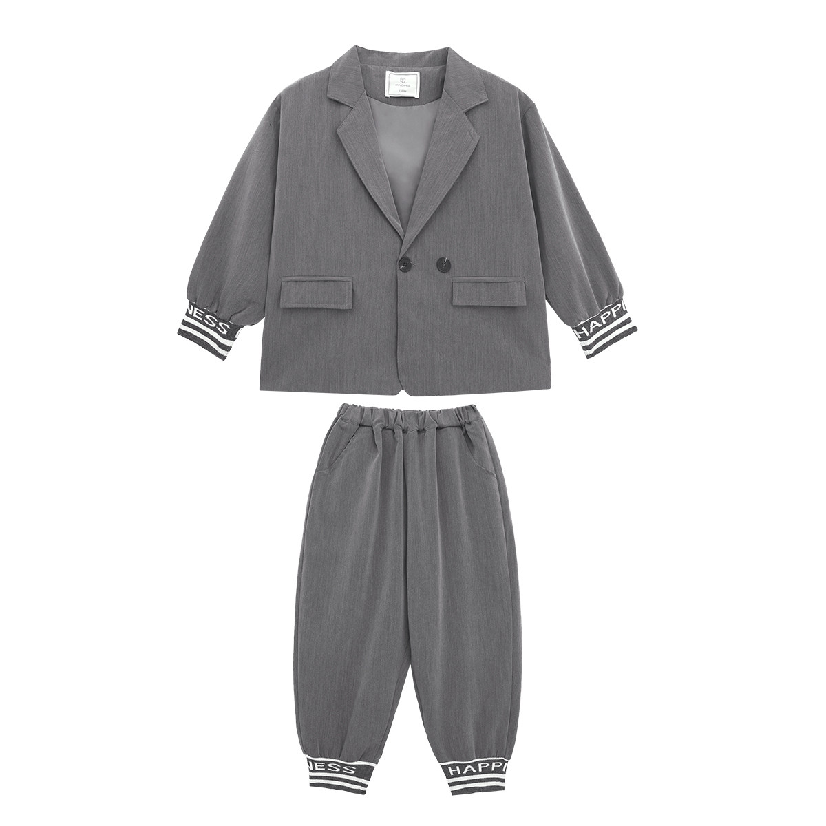 派町童装男童套装2025春季新款大童英伦风翻领针织休闲西装两件套