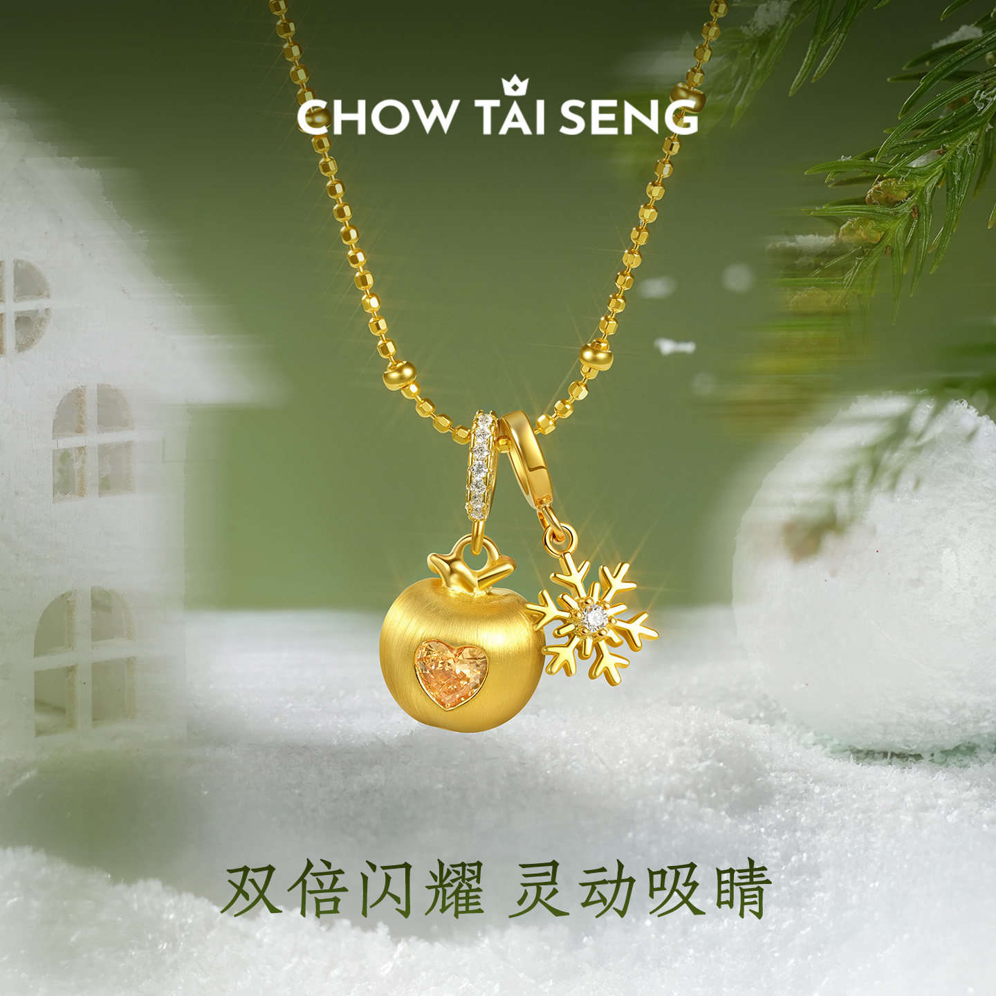 周大生苹果吊坠S925纯银项链高级感锁骨链圣诞平安果礼物送女朋友