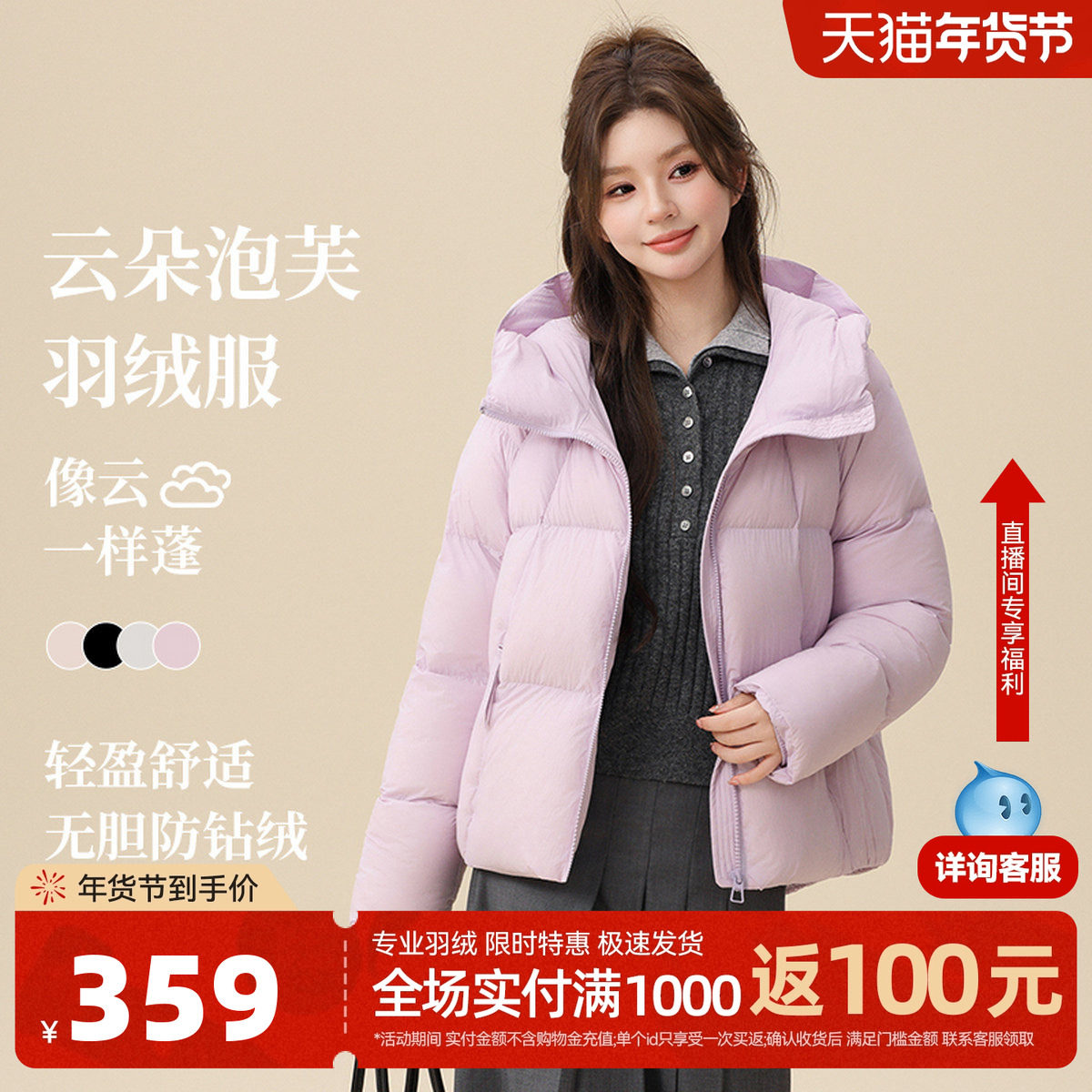 【云朵泡芙】雪中飞2026春新款茧型短款羽绒服女轻盈蓬松简约通勤
