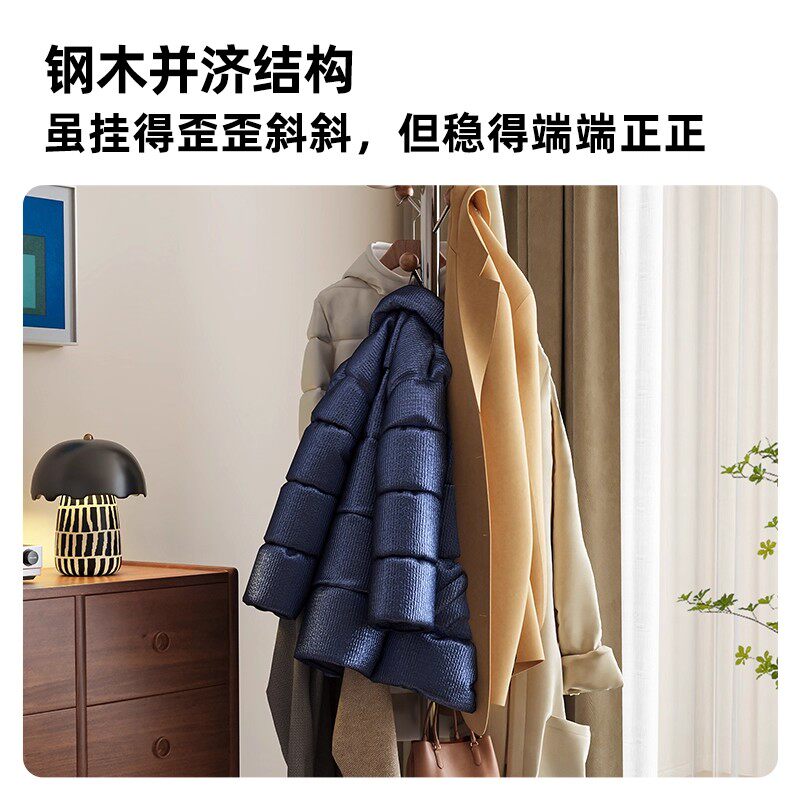 挂衣架落地现代卧室不占空间衣架立式实木挂衣杆客厅不锈钢衣帽架