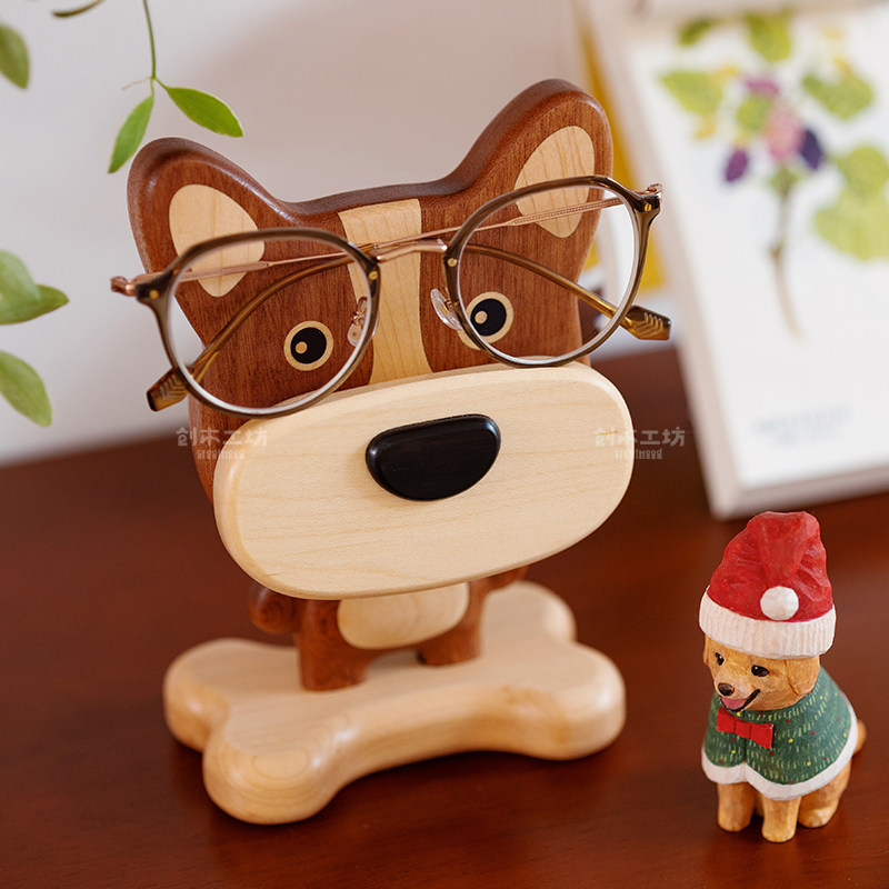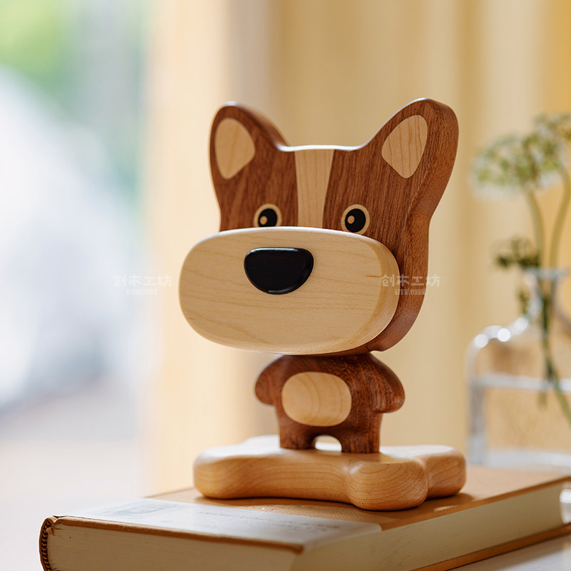 大鼻子狗眼镜手机支架/创木工坊治愈系ipad平板桌面手机座礼品