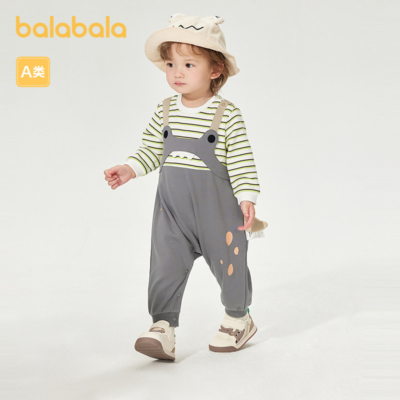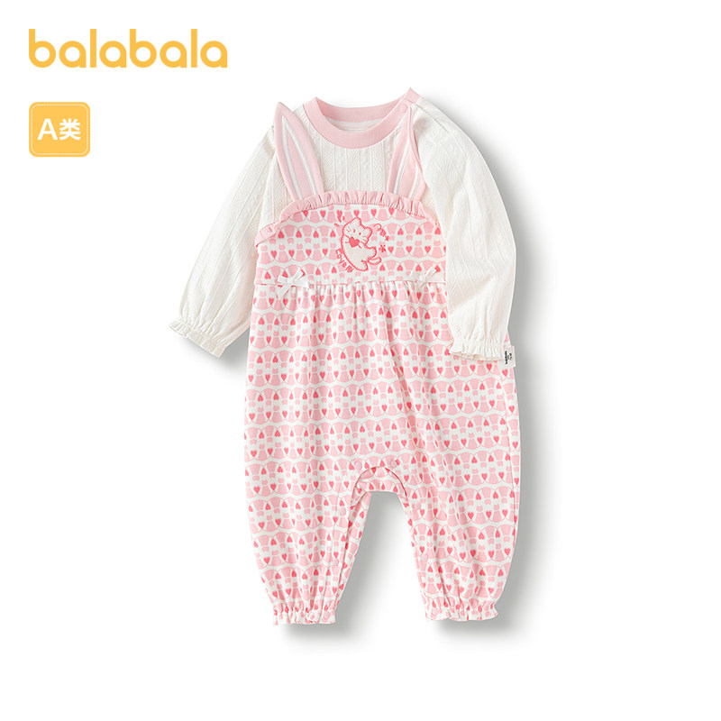 巴拉巴拉宝宝童装连体衣新生儿哈衣爬服抱衣假两件背带设计可爱萌