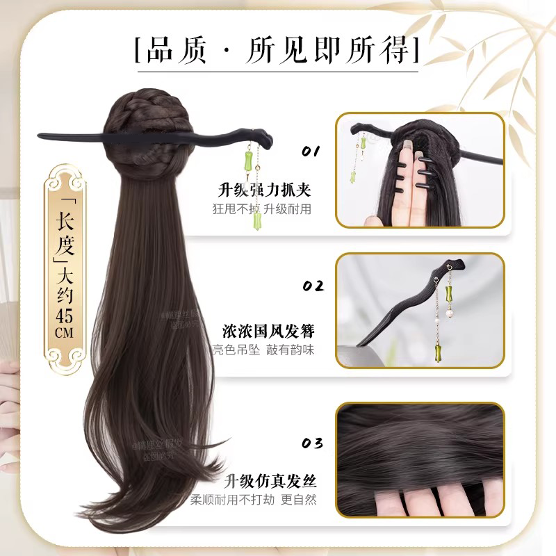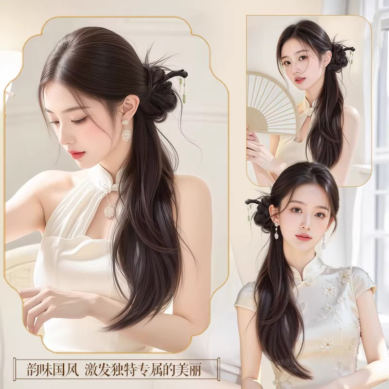 新中式假发辫马尾仿真发古风汉服旗袍侧边抓夹高马尾假发辫子发饰