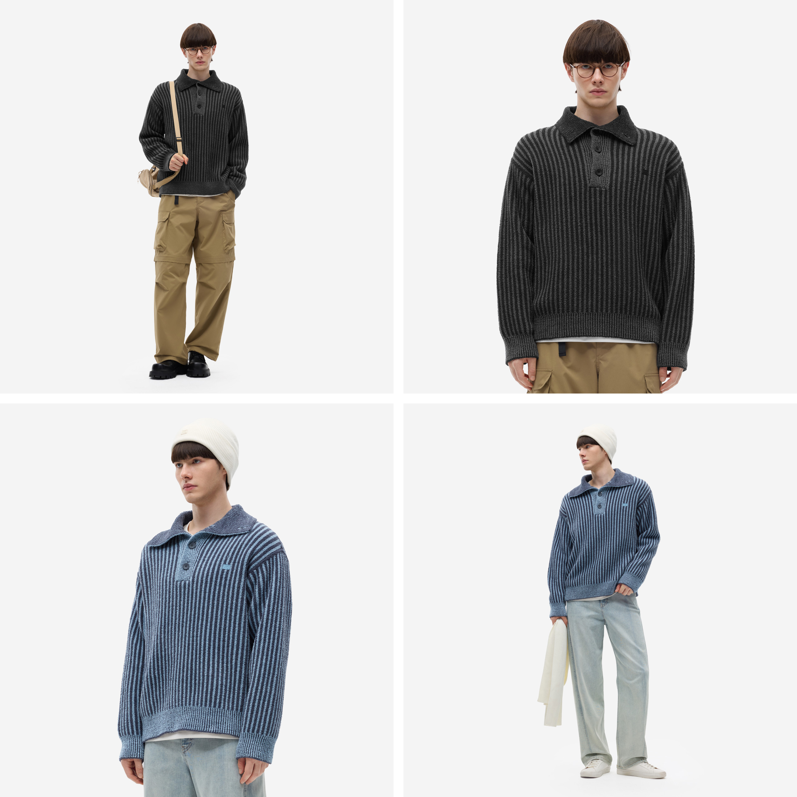 蕉内热皮302++男士中空纱半边绒翻领毛衣polo半开衫保暖上衣新款