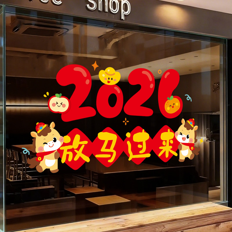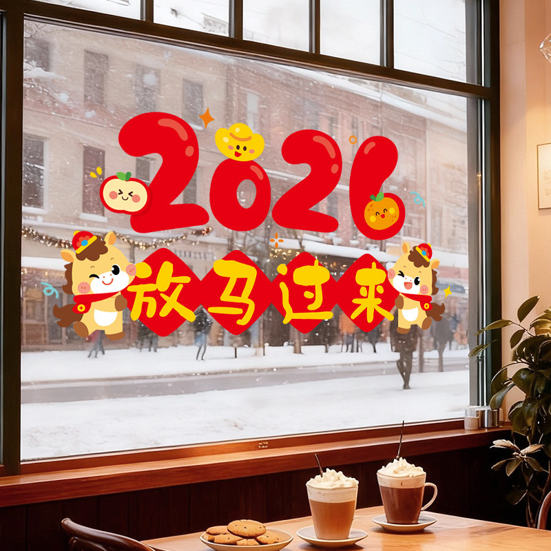 2026新年窗花马年装饰新款玻璃门贴纸静电橱窗贴春节氛围布置贴画