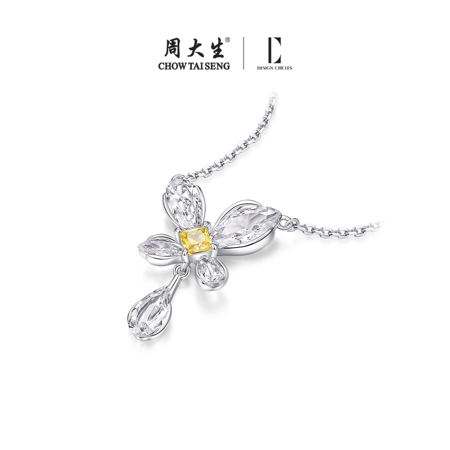 周大生*DC鸢尾花序项链纯银2025新款轻奢高级锁骨链女款生日礼物