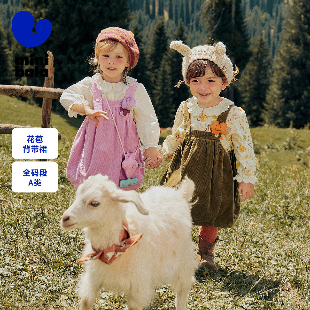 迷你巴拉巴拉女童儿童灯芯绒背带裙亲肤萌趣可爱花苞裙子2025秋季