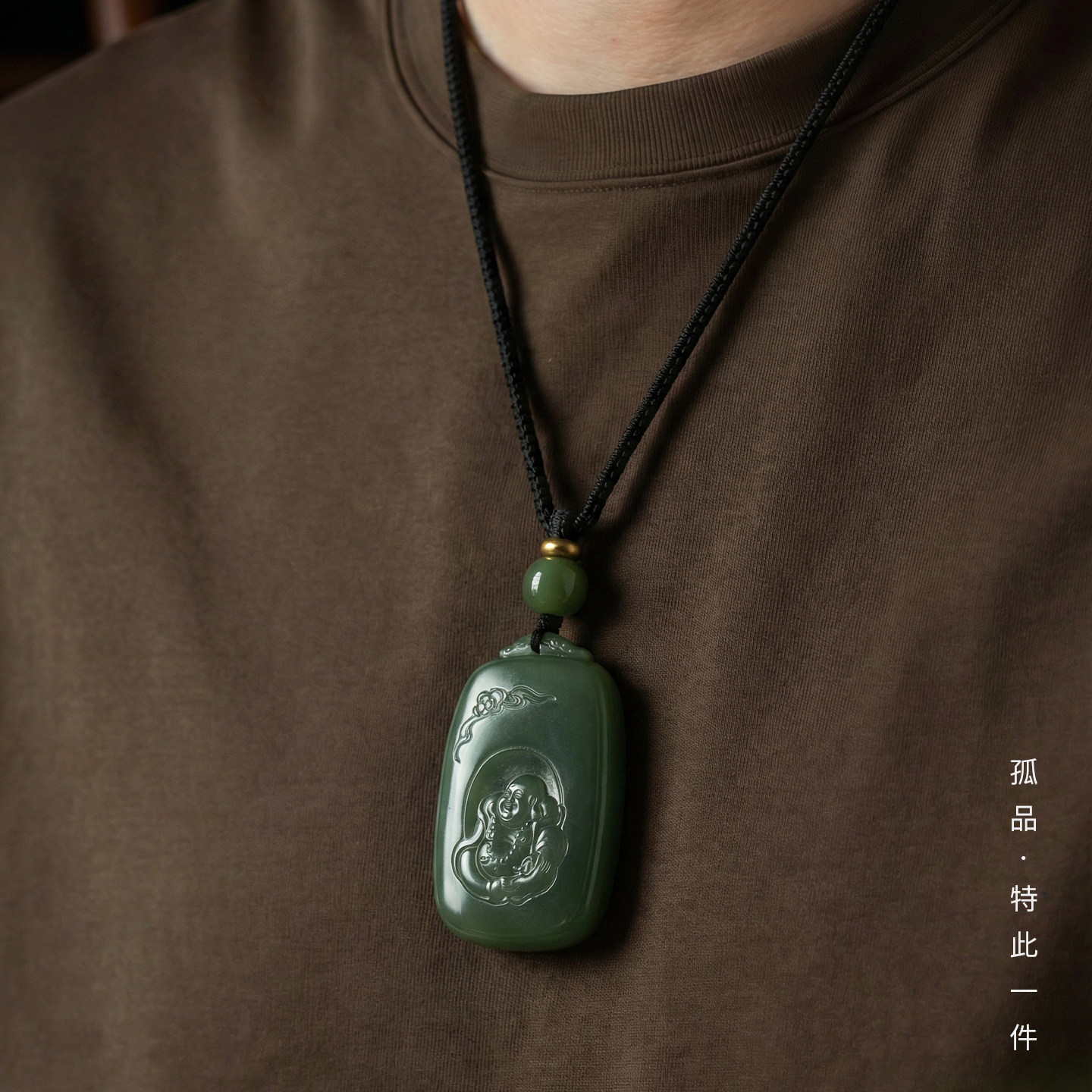 孤品【和田玉·佛公】天然和田玉弥勒佛吊坠精致项链一物一证