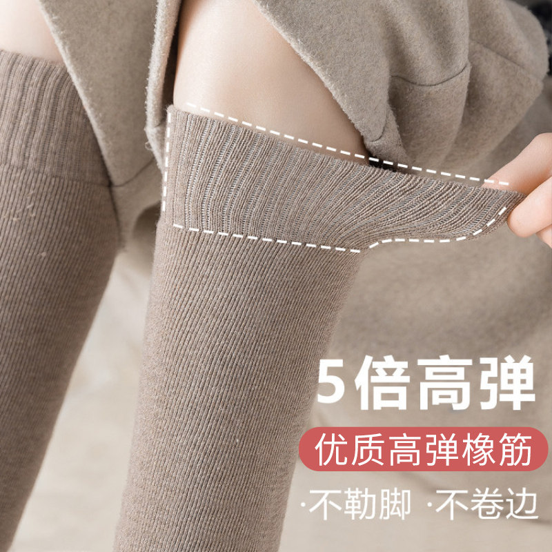 过膝袜子女秋冬羊毛长筒袜加厚保暖护膝大腿袜纯棉压力显瘦高筒袜