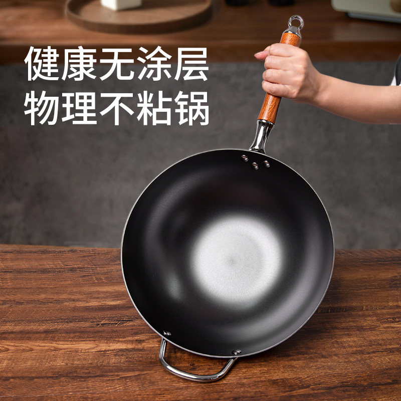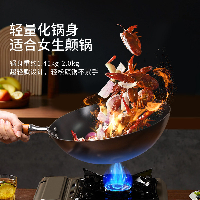 铁锅官方旗舰炒菜锅老式炒锅铁锅家用不粘锅无涂层燃气灶适用