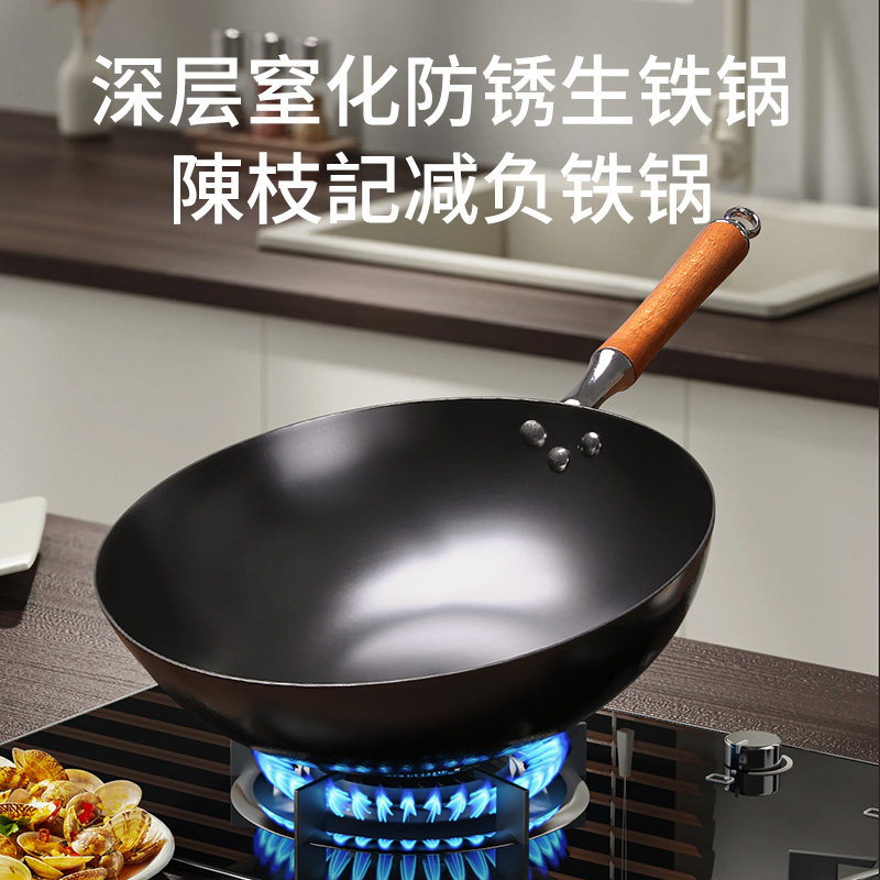 【经典款】中康精铁炒锅铁锅氮化防锈无涂层炒锅电磁炉燃气灶通用