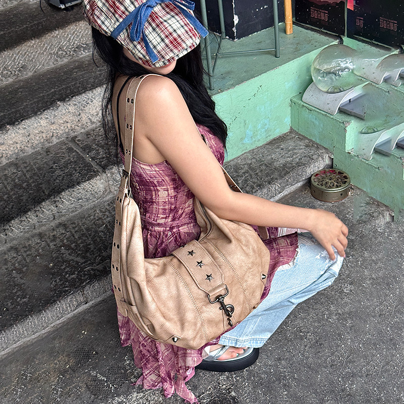 妖精的口袋废土风复古大容量单肩包2025年新款甜酷设计感托特包