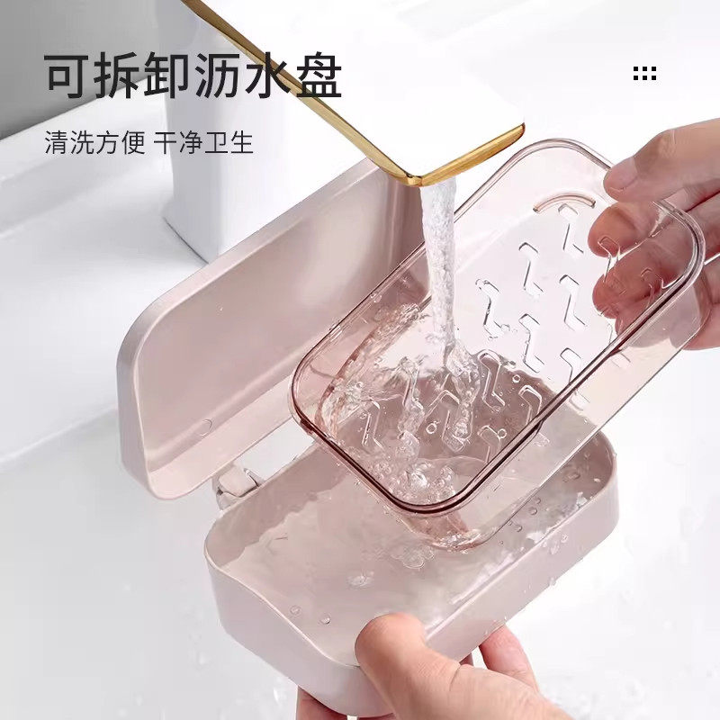 卫生间肥皂盒带盖香皂盒浴室免打孔翻盖家用沥水洗衣皂盒皂架双层