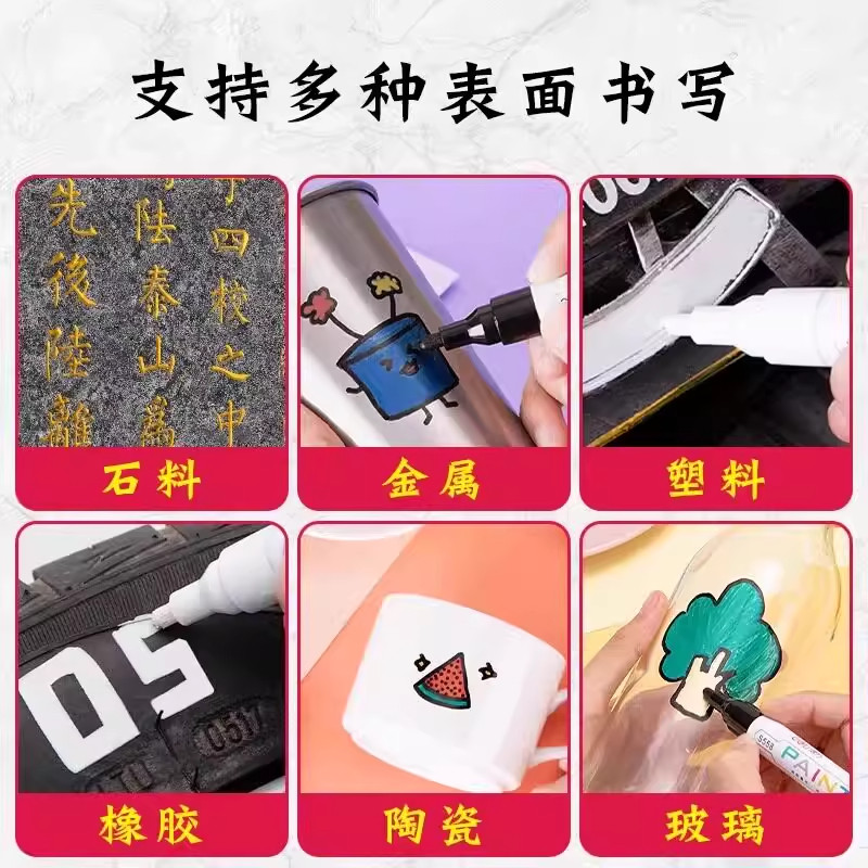碑文补漆笔清明节石碑专用软头不掉色描字笔红色金色油漆笔补色笔