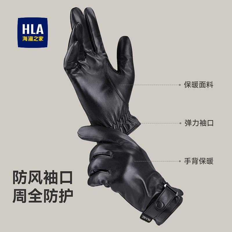 海澜之家羊皮手套男士2025年新款户外骑行加绒触屏品牌真皮秋冬春